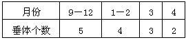 5、填空题 北京地区的生殖季节是4~6月,在一年中的其他一月份,要从促进卵的成熟和排放,可用人工评选方法,向已怀卵雌蛙腹腔内注射蛙垂体悬浮液。表中列出了某些月份,制备注射到每只青蛙体内的雌蛙垂体悬浮液所需的垂体个数。