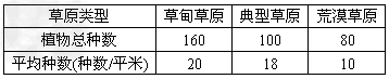 3、选择题 下表为三个稳定草原生态系统中植物调查的统计数据。下列相关叙述正确的是