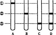 3、选择题 将某哺乳动物的细胞放在含有31P磷酸的培养基中,连续培养数代后得到G0代细胞。然后将G0代细胞移至含有32P磷酸的培养基中培养,经过第1、2次细胞分裂后分别得到G1、G2代细胞。再从G0、G1、G2代细胞中提取出DNA经密度梯度离心后得到结果如图。①②③分别表示轻、中、重三种DNA分子的位置。下列说法错误的是