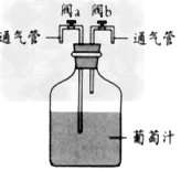 3、选择题 小李尝试制作果酒,他将葡萄汁放入已灭菌的发酵装置中进行试验(见下图),正确做法是