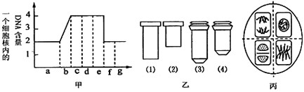 1、选择题 下图中甲图表示洋葱根尖分生区连续分裂的细胞在各个时期细胞核内DNA含量的测定结果,乙图是一组目镜标有5×和16×字样、物镜标有10×和40×字样的镜头,丙图是在乙图中选用的一组能放大50倍的镜头组合所观察到的图像。欲将丙图视野中处于甲图a时期的细胞移至视野中央放大640倍观察,下列操作中不正确的是