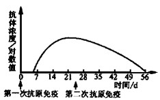 5、选择题 一般情况下,用抗原免疫机体,血清中抗体浓度会发生相应变化。如果第二次免疫与第一次免疫所用的抗原相同且剂量相等,下列四图中能正确表示血清中抗体浓度变化的是