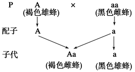 本题解析:蜜蜂的雄蜂是未受精的卵细胞发育而来的,雌蜂是由受精卵发育而来的。设褐色和黑色分别由A、a控制,则遗传图解如下: