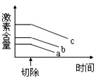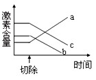 2、选择题 切除幼年狗的垂体后,短期内该狗血液中三种激素——促甲状腺激素释放激素(a)、促甲状腺激素(b)、甲状腺激素(c)的含量随时间的变化曲线最可能是