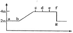 本题解析:从图可知,ac段是分裂间期,bc段进行DNA复制,cd是分裂前期,de段介分裂中期,ef段分裂后期,fg是分裂末期,分裂后期染色单体分离成为染色体,染色体数目暂时加倍,无染色单体,所以C选项错误。