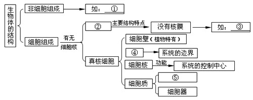 4、连线题 请根据所学知识,完成有关“生物体的结构”相关的概念图。