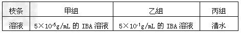 ②将甲、乙、丙三组枝条的下端分别浸泡在下表所示的溶液中,相同时间后,扦插在潮湿的沙土中,在适宜的环境中培养。
