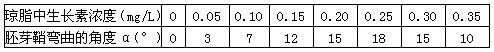 1、选择题 以下是某研究性学习小组所做的实验:在胚芽鞘切面一侧放置含不同浓度生长素的琼脂块,测定各胚芽鞘弯曲生长的角度,下表数据说明