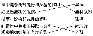(1)请将上列实验名称与材料、试剂、用具的对应关系用连线表示,每项只准选择一次。