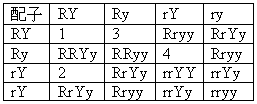 D.基因型RRYY,RrYY,RRYy和RrYy,出现机率为1/16、2/16、4/16、2/16,大小顺序为3>4=2>1;错误。