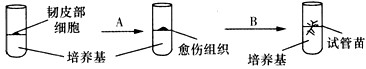 1、连线题 下图所示胡萝卜的韧皮部细胞通过无菌操作,接入试管后,在一定条件下,形成试管苗的培育过程,请据图回答下列问题: