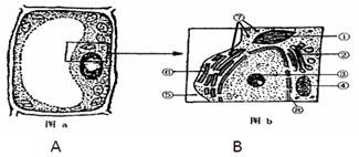 4、选择题 图a与图b是某细胞结构不同放大倍数的模式图,图b中的①一⑧是细胞内的相关结构。下列关于这两图的叙述,正确的是