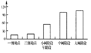 4、选择题 下图是对某地种植的广东松种群年龄结构调查结果,该种群的最终发展趋势是