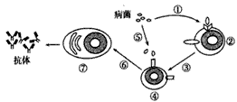 4、选择题 如图表示病菌首次感染人体后,所发生的特异性免疫的部分过程,据图分析正确的是