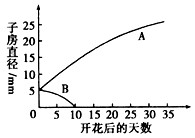 1、连线题 如图表示黄瓜的雌蕊柱头受粉与否对子房生长影响的曲线,请分析回答。