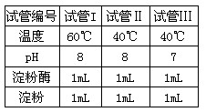 5、选择题 下列是有关某种淀粉酶的实验,处理方式及结果如下表及图所示。依此判断下列有关叙述正确的是