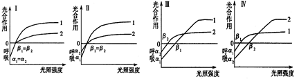 4、选择题 下面的曲线以及说明中,不正确的是1代表典型的阳生植物,2代表典型的阴生植物,α表示植物在黑暗中细胞呼吸放出CO2的量,β表示光补偿点(即光合作用吸收CO2的量等于细胞呼吸放出CO2的量时的光照强度)