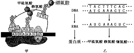 (1)甲图中含有________种核苷酸,缬氨酸的遗传密码子是__________,该图表示了DNA中遗传信息的___________过程。