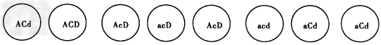 5、选择题 下图表示某个生物的精子细胞,试根据细胞内基因(三对基因独立遗传)的类型,判断其精细胞至少来自精原细胞的个数为