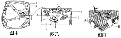 (6)若图甲、乙表示是根尖分生区细胞,则不应该出现的结构是[? ]______和[? ]_______。