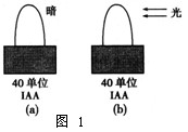 (一)实验步骤:将生长状况相同的胚芽鞘尖端切下来,放在琼脂切块上,分别放在黑暗中和单侧光下(如图1所示)。