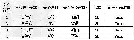 (4)下面是有关加酶洗衣粉洗涤效果的探究实验,请据表回答下列问题: