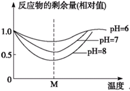 1、选择题 如下图表示pH、温度与反应物剩余量的关系,据图判断下列分析中正确的是