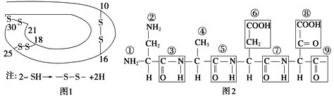 2、选择题 下面是某蛋白质的肽链结构示意图(图1,其中数字为氨基酸序号)及部分肽链的放大图(图2)。请据图判断,下列叙述中不正确的是