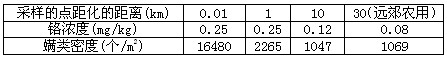 5、选择题 下表是某研究性学习小组调查土壤中螨类孳生与某化工厂重金属铬污染的相关性结果。根据表中信息,判断下列叙述正确的是