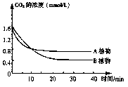 3、选择题 将A、B两种植物的幼苗,分别置于相同的两个密闭透明玻璃罩内,在相同且适宜的条件下培奍,定时测定玻璃罩内的CO2含量,结果如图。下列相关叙述中正确的是