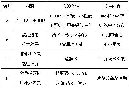 5、选择题 在观察藓类叶片细胞叶绿体形态与分布,观察DNA、RNA在细胞中的分布,观察植物根尖细胞有丝分裂,观察植物细胞的吸水和失水的四个实验中,它们的共同点是