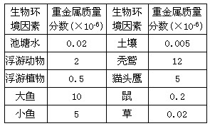 1、填空题 某同学为了研究环境中重金属元素对生物的污染情况,分别测定了池塘和草原生态系统中某种重金属元素在各种生物体内的质量分数,结果如下表,请根据下表回答问题。