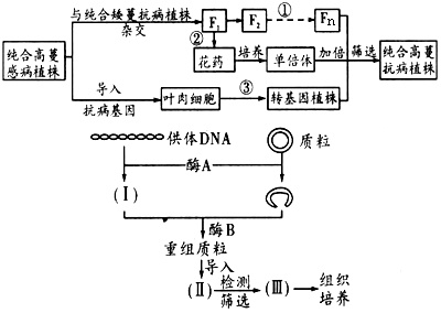(3)过程③是直接通过基因工程导入某种基因来获得理想的基因型植株,其思路如上图所示。请问图中酶A是指__________,酶B是指__________。