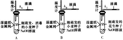 C.当种子中的有机物消耗完毕,温度计读数hB最高