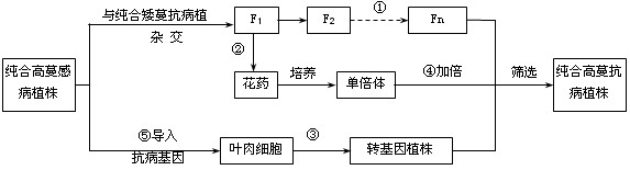 2、选择题 为获得纯合高蔓抗病番茄植株,采用了下图所示的方法:图中两对相对性状独立遗传。据图分析,不正确的是