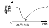 4、选择题 下图是长期使用一种农药后,害虫种群密度的变化情况。下列有关叙述中不正确的是