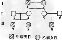 2、选择题 某校学生在开展研究性学习时,进行了人类遗传病方面的调查研究,发现一家族中有的成员患甲种遗传病,有的成员患乙种遗传病。如图是该校学生根据调查结果绘制的该家族遗传系谱图,现已查明,Ⅱ6不携带致病基因。下列对该家族系谱的分析判断中,正确的是