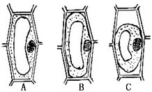 5、选择题 将一张洋葱鳞片叶放在某一浓度的蔗糖溶液中,制成装片,放在显微镜下观察,有3种状态的细胞,如下图,你认为这3个细胞在未发生上述情况之前,其细胞液的浓度依次是