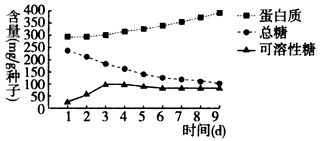 2、综合题 为了研究在大豆种子萌发和生长过程中糖类和蛋白质的相互关系,某研究小组在25℃、黑暗、无菌、湿润的条件下萌发种子,然后测定不同时间种子和幼苗中相关物质的含量,结果如下图所示。在上述定量测定之前,进行了蛋白质含量变化的预测实验,请填充实验原理;判断实验步骤中画线部分是否正确,并更正错误之处;写出实验结果。