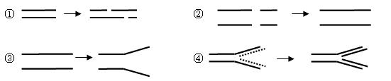 1、选择题 下图为DNA分子在不同酶的作用下所发生的变化,图中依次表示限制性内切酶、DNA聚合酶、DNA连接酶、解旋酶作用的正确顺序是