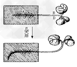 (2)图中A、B、C、D四处,生长素浓度比较高的是_________处,细胞生长速度较快的是_________________。这种变化引起的原因是___________________。