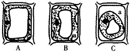 3、连线题 将紫色万年青的叶片表皮细胞放在某一浓度的蔗糖溶液中,制成装片,在显微镜下观察到有下列三种状态的细胞,请回答: