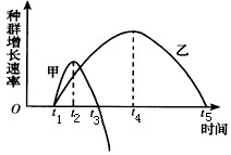 C.t1~t2时间段内甲、乙种群都呈“S”增长
