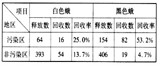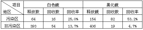 A.污染区白色蛾释放数多于回收数主要是由于白色蛾迁出造成的