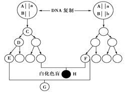 本题解析:试题分析:根据题意及图解,白化病为常染色体隐性遗传,色盲为伴X隐性遗传。E、F为减数分裂产生的配子,含23条核DNA及少量的质DNA,1个染色体组,A项错误;基因的自由组合定律发生在减数第一次分裂过程即图中的C→D阶段,B项正确;该夫妇双方的基因型分别为AaXBY、AaXBXb,其后代所生的子女中完全正常的概率是3/4A_×3/4(XBX_、XBY)=9/16,故患病的概率=1-9/16=7/16,C项错误;由H是两病兼患的女性个体可知H的基因为aaXbXb,故可知形成该个体的卵细胞的基因型为aXb,精子的基因型为aXb,进而根据减数分裂过程可推出E中含Y染色体,故G的性别为男性,D项错误。