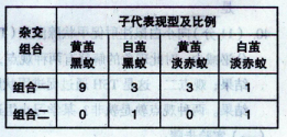 1、选择题 在家蚕遗传中,蚁蚕(刚孵化的蚕)体色的黑色与淡赤色是相对性状,黄茧和白茧是相对性状(控制这两对性状的基因自由组合),两个杂交组合得到的子代(足够多)数量比见下表,以下叙述中错误的是?