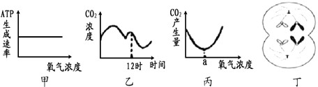 C.丙图表示酵母菌呼吸时氧气浓度与CO2产生量的关系,a点时ATP产生量最大