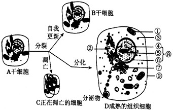 (4)若D细胞是正在衰老的细胞,则结构⑧发生的变化是_________________。