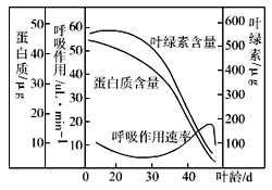 1、选择题 下图表示蚕豆叶片衰老过程中的某些生理变化,下列分析不正确的是