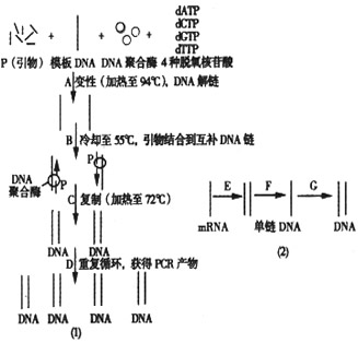 图一示经PCR技术扩增获取DNA的过程。图二示反转录形成DNA的过程。